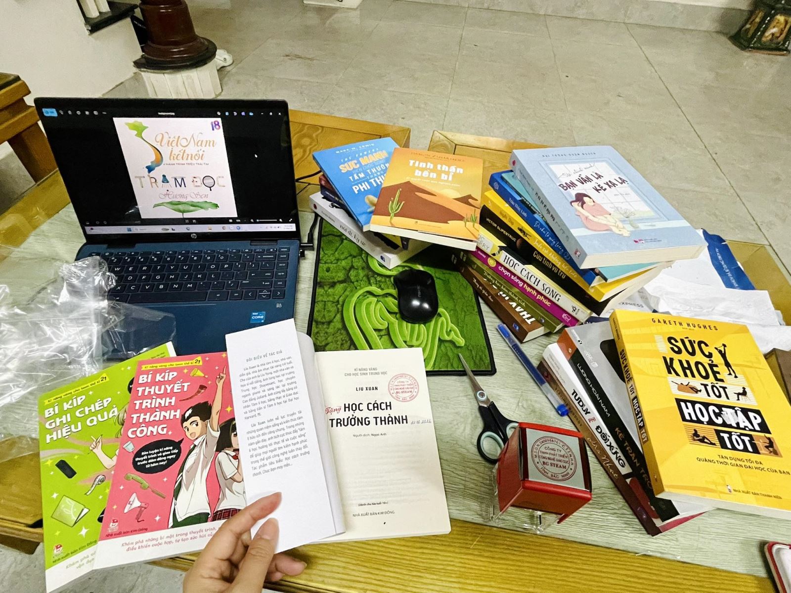 Trạm Đọc Hương Sen đang chuẩn bị những cuốn sách để tặng trường THPT Nguyễn Huệ - Hải Phòng trong chương trình NGÀY HỘI STEAM nhằm lan toả văn hoá đọc, tình yêu sách trong ngày 21/3/2026.