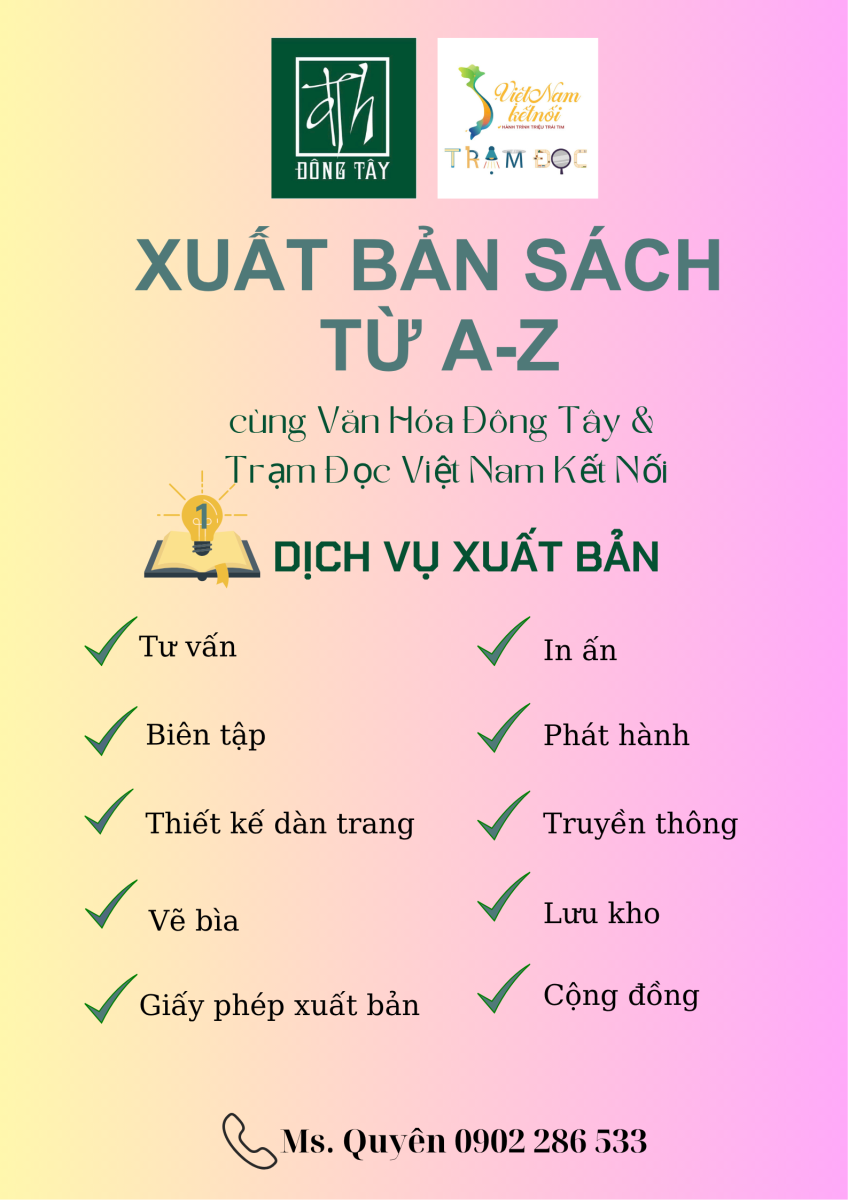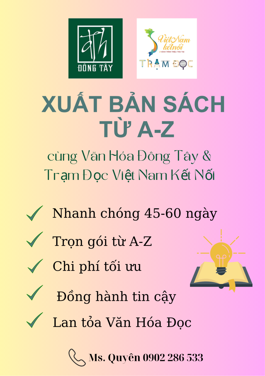 Là sự kết hợp của Dịch Vụ Xuất Bản Sách Đông Tây của anh Đoàn Tử Hoan gần 30 năm kinh nghiệm & 20 Trạm đọc Việt Nam Kết Nối với hơn 50 thành viên chủ Trạm vẫn miệt mài lan tỏa sách & Văn hóa Đọc nhiều năm. Cái duyên nó gặp gỡ, từ những lần tìm kiếm để mang đến những giải pháp tối ưu & hiệu quả cho các tác giả sách. Lúc trước ai cũng nghĩ phải có tầm 50-100tr mới in được sách, phải viết giỏi lắm, phải đợi lâu lắm mới xin giấy phép được, phải nổi tiếng mới bán được sách... Câu trả lời là KHÔNG bạn nhé.